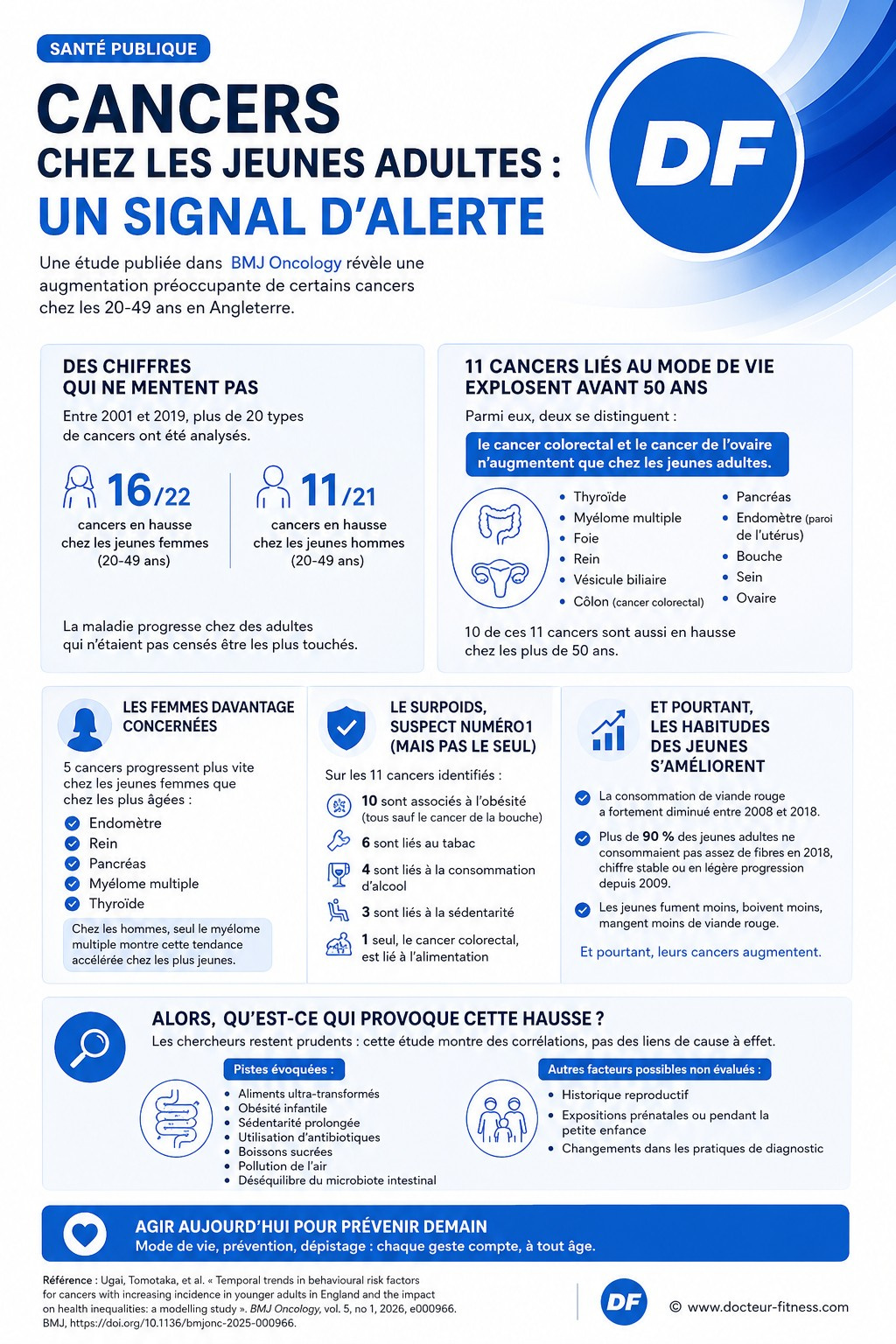 Résultat : 16 cancers sur 22 chez les jeunes femmes et 11 sur 21 chez les jeunes hommes ont augmenté de manière significative sur cette période.