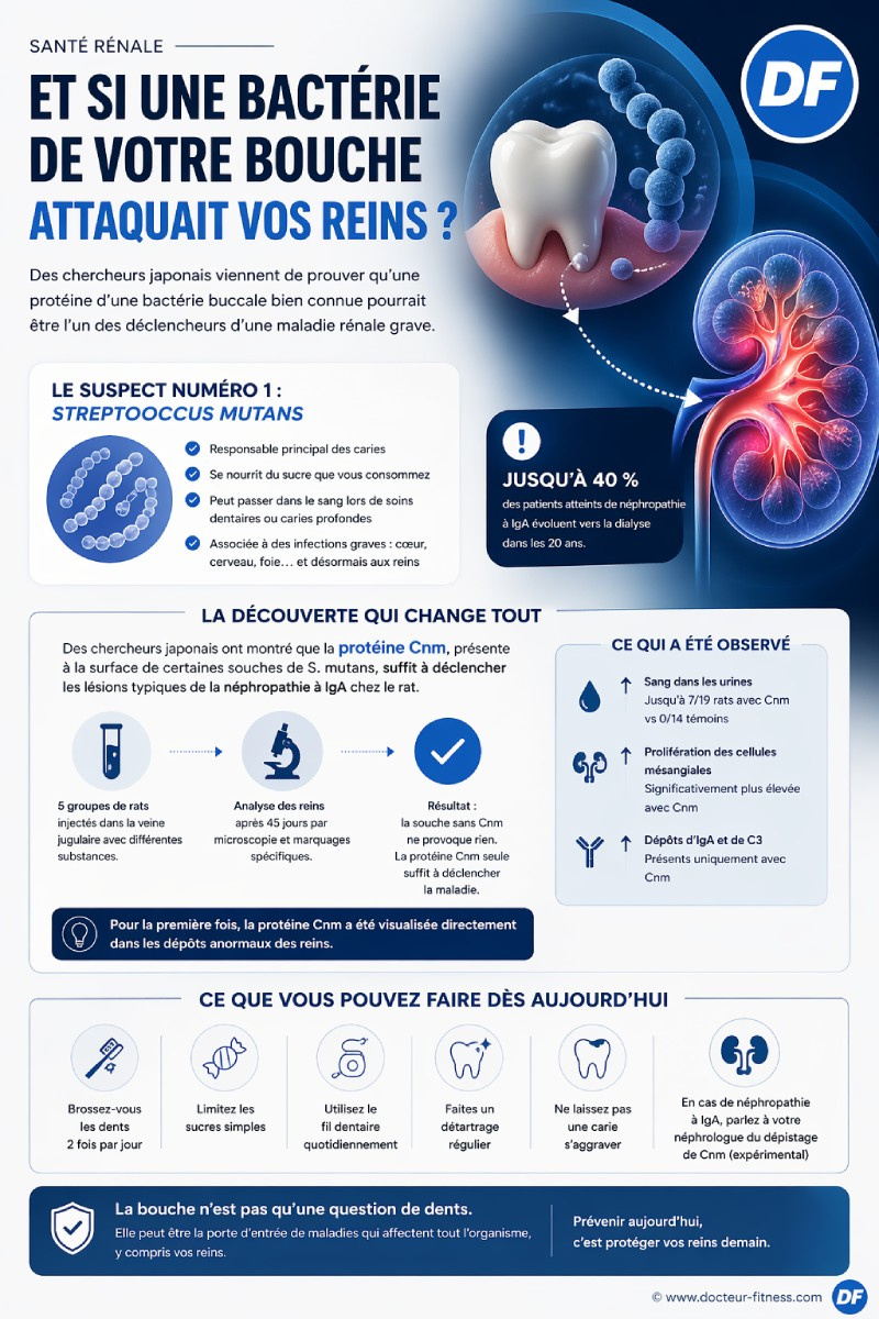 Il vit dans votre bouche depuis l’enfance. Il se nourrit du sucre que vous mangez. Il creuse vos dents, provoque des caries, et jusqu’ici, c’était tout ce qu’on lui reprochait. Mais des chercheurs japonais viennent de publier une étude qui change complètement la donne. Ce micro-organisme banal, présent chez la majorité des adultes, pourrait être l’un des responsables d’une maladie rénale qui touche des millions de personnes dans le monde et qui pousse jusqu’à 40 % des malades vers la dialyse.