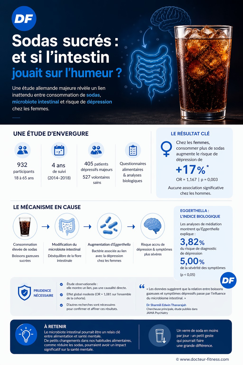 Un verre de soda en moins par jour n’est probablement pas un antidépresseur. Mais pour les femmes concernées par les troubles dépressifs, ce geste banal pourrait, à en croire cette recherche, peser un peu plus lourd qu’on ne le pensait jusqu’ici.