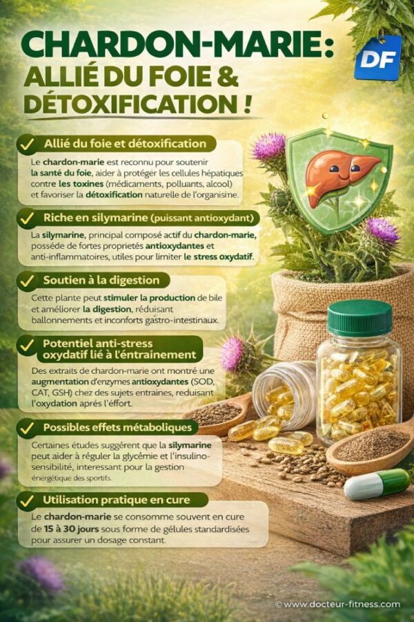 La silymarine, le composé actif du Chardon-Marie a été historiquement utilisé dans les pathologies hépatiques. Cliniquement, la silymarine exerce ses effets hépatoprotecteurs à travers des effets antioxydant, antifibrotique, anti-inflammatoire, antitoxine et possède également des mécanismes d’action anticancéreux.