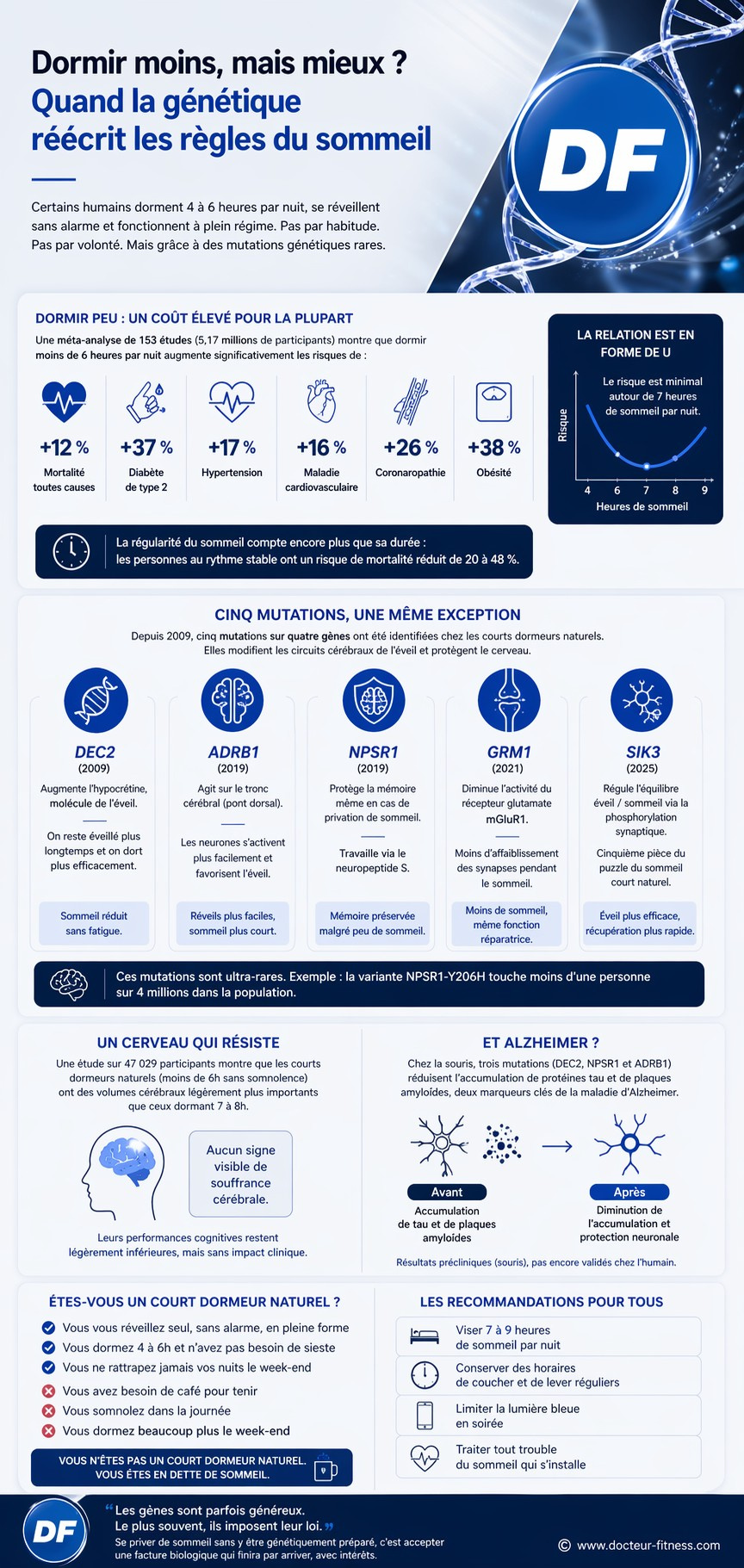 Les gènes sont parfois généreux. Le plus souvent, ils imposent leur loi. Se priver de sommeil sans y être génétiquement préparé, c’est accepter une facture biologique qui finira par arriver, avec intérêts.