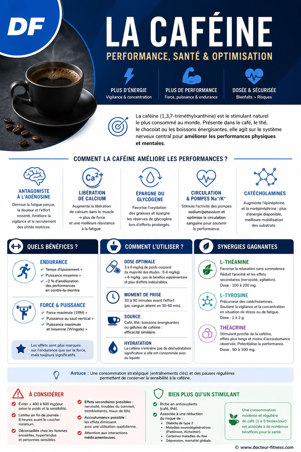 La caféine a longtemps été présentée comme un supplément pour améliorer les performances. Cet article détaillera les effets de la caféine sur l’organisme, de la façon dont elle influe sur les performances musculaires et de la question de savoir si la caféine est une substance dangereuse ou pas sur la santé.