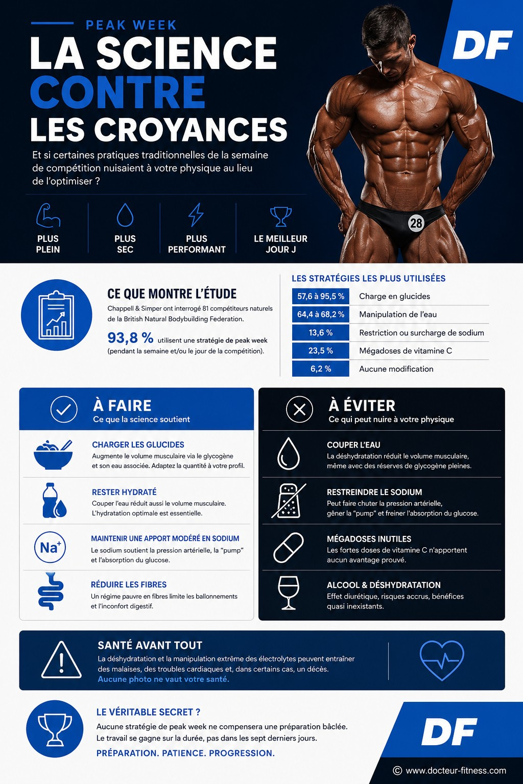 Le message est finalement assez simple : charger les glucides oui, couper l’eau et le sel non, et garder à l’esprit qu’aucune stratégie de peak week ne pourra rattraper une préparation bâclée. Le travail se gagne sur la durée, pas dans les sept derniers jours.