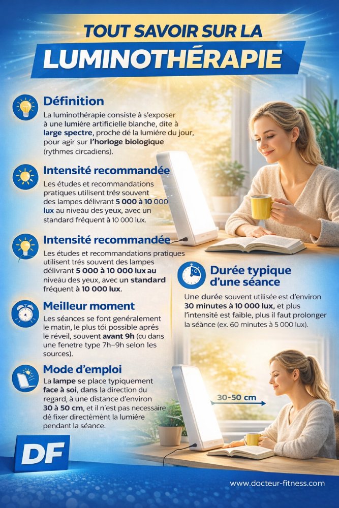 Vous pouvez faire vos séances en institut, en centre hospitalier sur prescription médicale, chez vous, ou même… pendant votre sport ! Oui, grâce à la luminette, les lunettes de luminothérapie. Il s’agit de la version mobile de la lampe. Comme la lampe, vous pouvez en acheter, ou en louer.