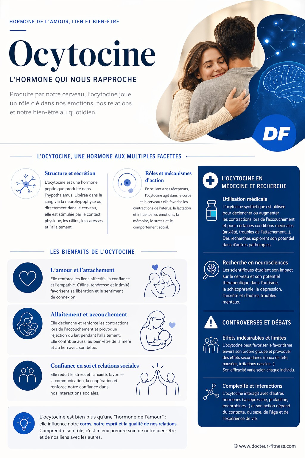 L’ocytocine est une hormone peptidique et une neurohormone qui joue un rôle clé dans l’accouchement, l’allaitement, l’amour, l’attachement et les relations sociales.