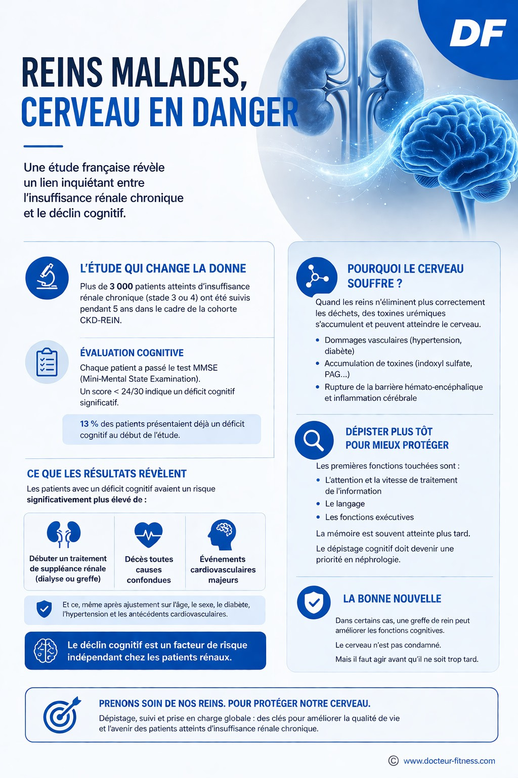 En clair : les reins malades ne se contentent pas de fatiguer le corps. Ils empoisonnent littéralement le cerveau à petit feu.