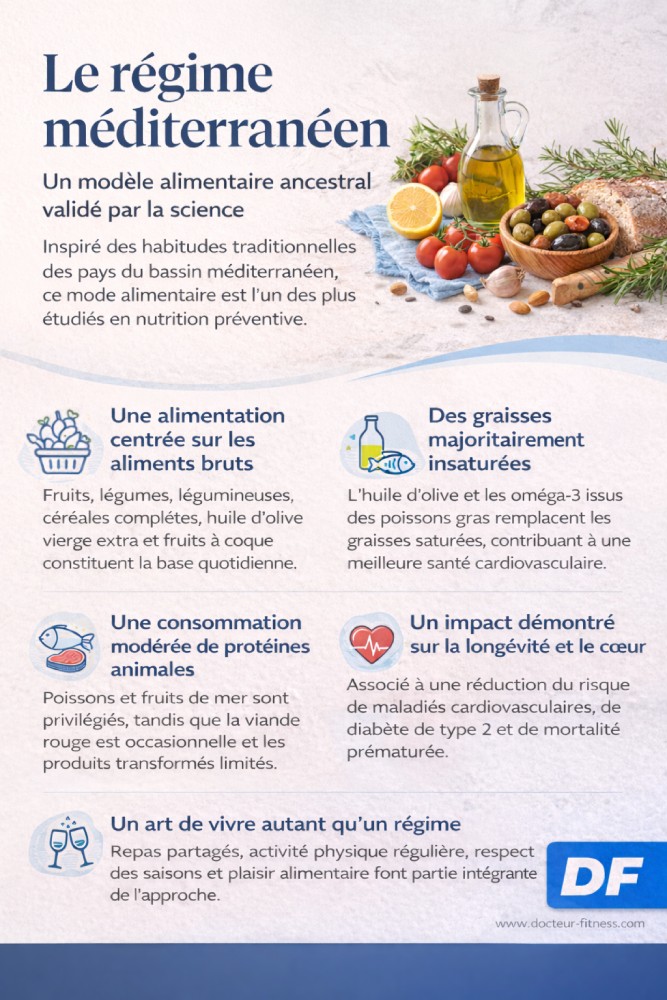Le régime méditerranéen est associé à de nombreux bienfaits pour la santé, tels que :