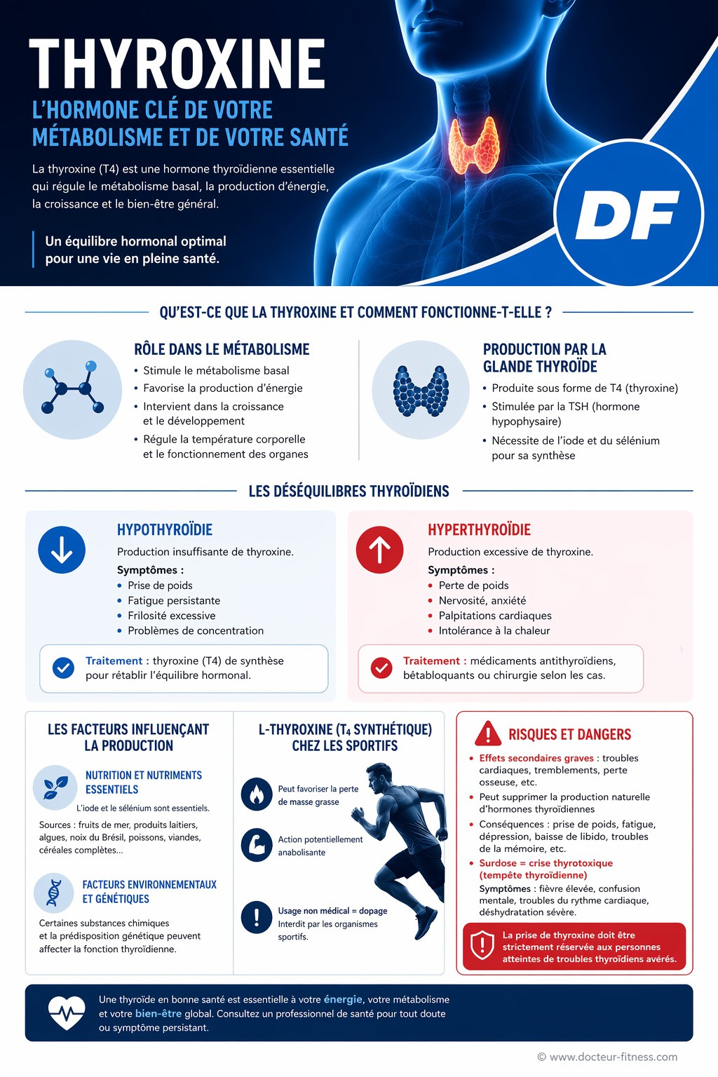 La thyroxine est une hormone essentielle produite par la glande thyroïde, qui joue un rôle crucial dans le métabolisme de l’organisme. La production et la régulation de la thyroxine sont finement contrôlées pour maintenir un équilibre hormonal adéquat. Les médicaments contenant de la lévothyroxine, tels que le Levothyrox et la L-thyroxine, sont utilisés pour traiter les troubles thyroïdiens, notamment l’hypothyroïdie.