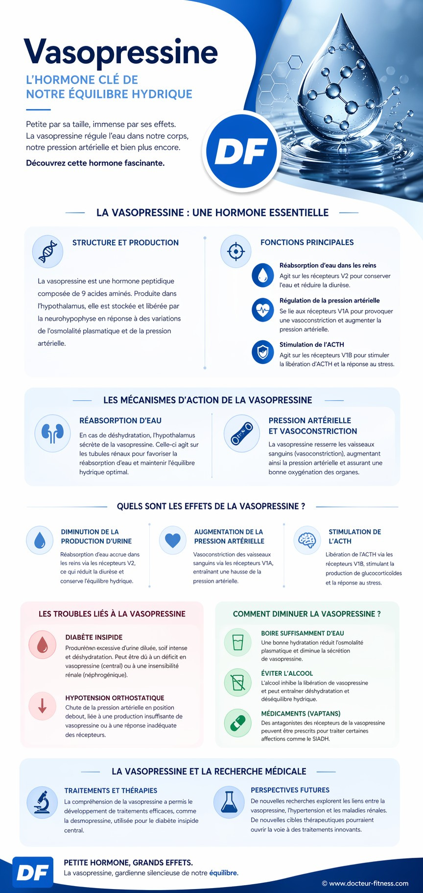 Chaque jour, notre corps doit maintenir un équilibre hydrique délicat pour assurer notre survie. Saviez-vous qu’une hormone en particulier, la vasopressine, joue un rôle central dans cette régulation ? Dans cet article, je vais vous présenter cette hormone fascinante, ses mécanismes d’action et les troubles liés à son dysfonctionnement.